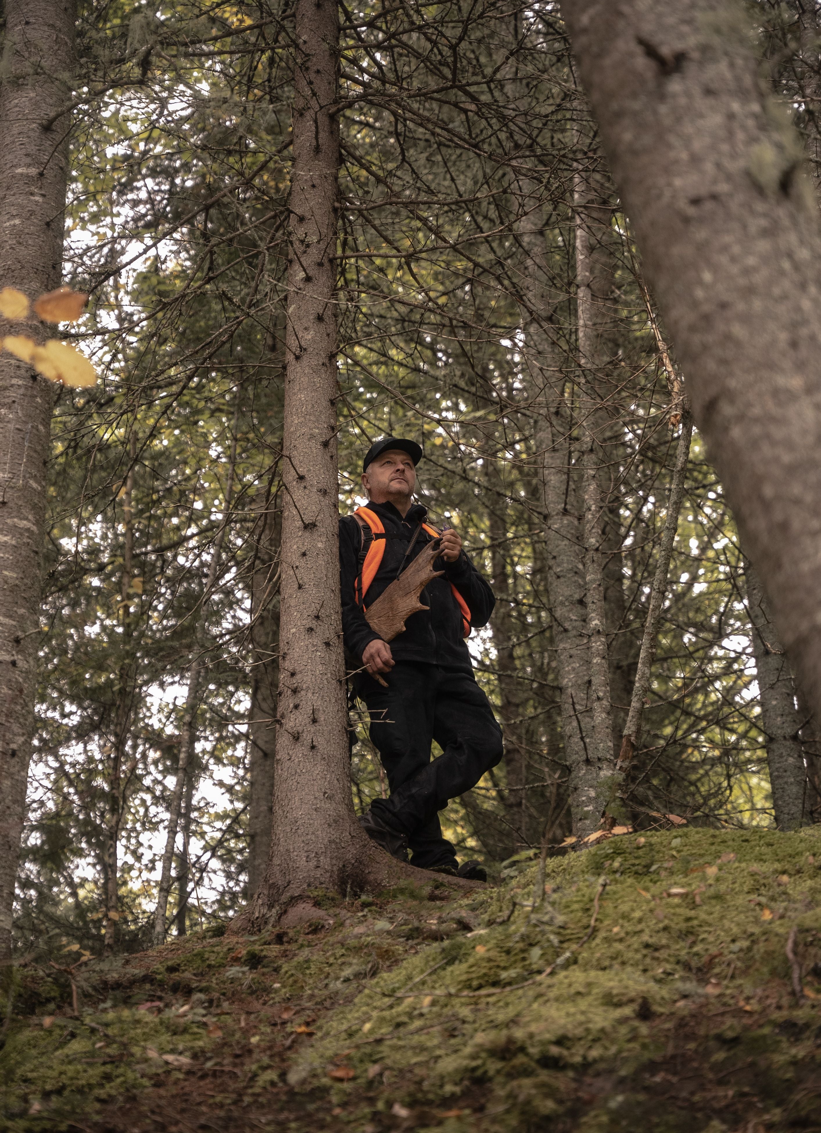 Much more than a black garment, the ''BlackMoose'' color paired with a brush finished fabric visually and physically imitates the coat of a moose. The purpose of our ''BlackMoose'' collection is to allow the hunter to approach and fool the moose by pretending to be one of them. Unlike camouflage, which allows you to hide unnoticed, the hunter is exposed and expects to be visually spotted, allowing the game to believe that he/she is a moose, proceed with the approach and gain its confidence.